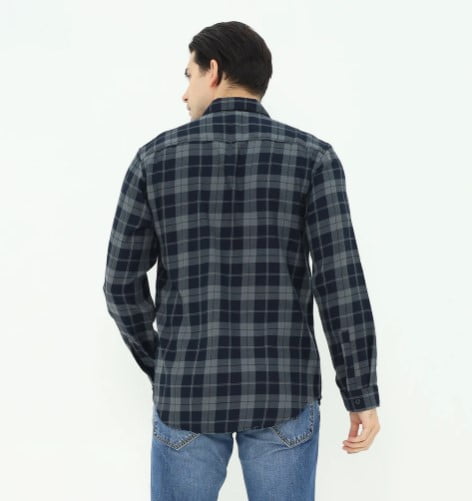 Kemeja flanel dengan perpaduan warna biru dan hitam ini sangat cocok untuk tampilan yang lebih bold dan maskulin. Warna gelap pada kemeja ini membuatnya ideal untuk acara malam hari atau kegiatan santai yang memerlukan sedikit sentuhan formal. Anda bisa memadukan kemeja ini dengan celana denim atau celana hitam untuk tampilan yang keren dan percaya diri.